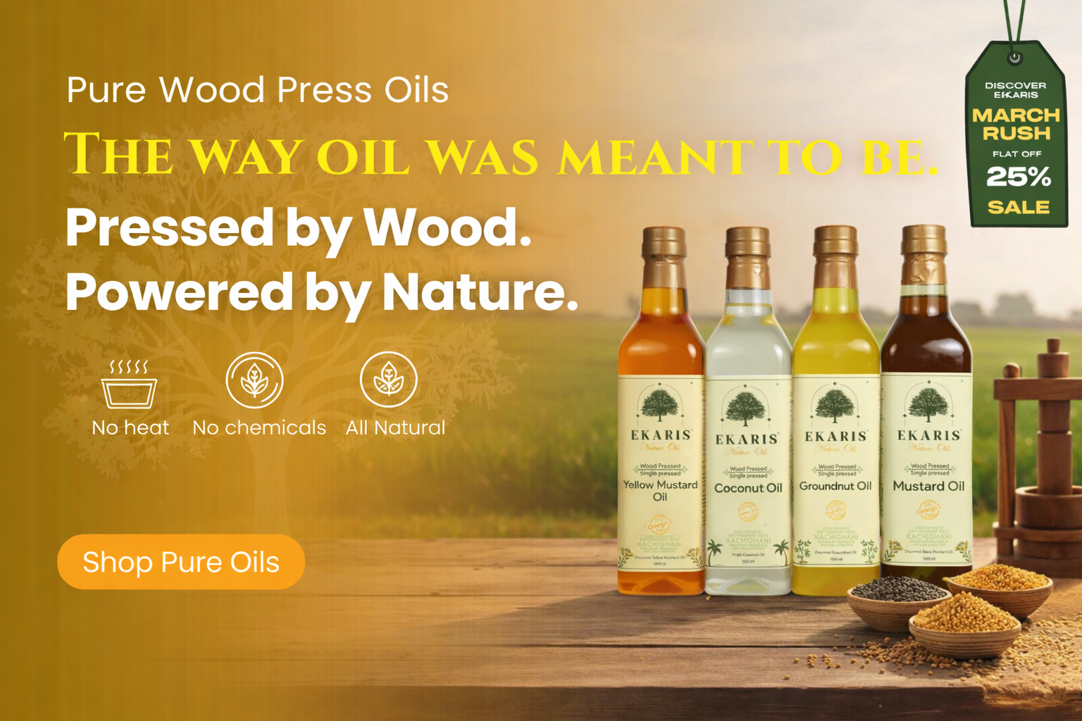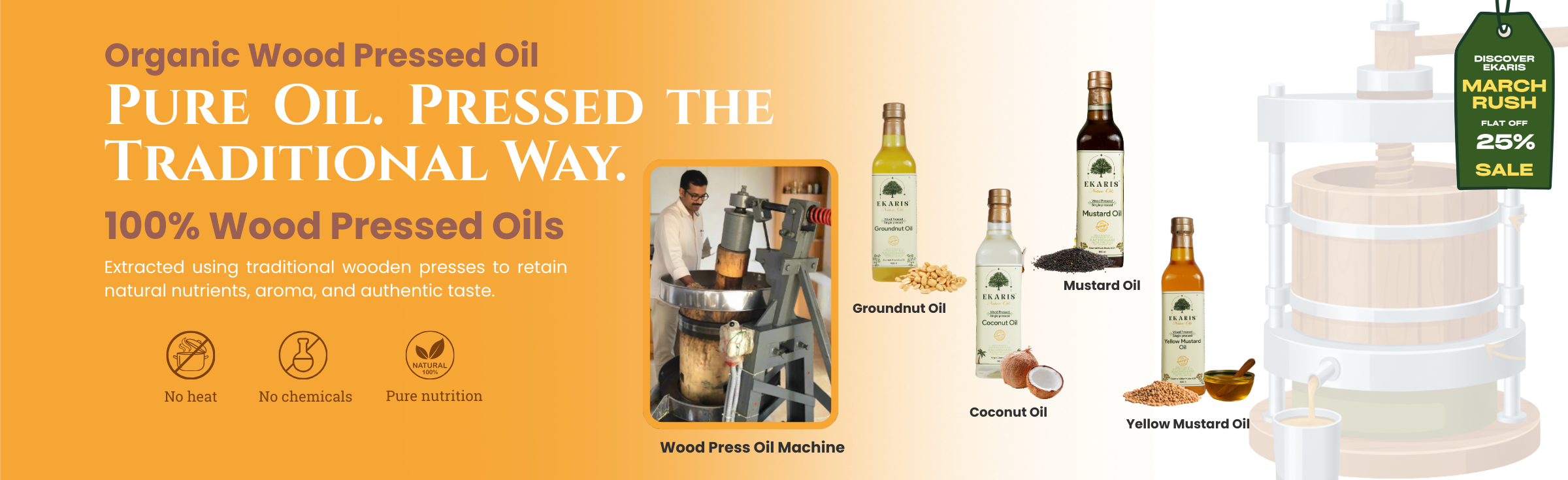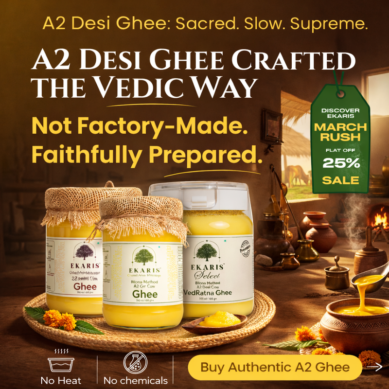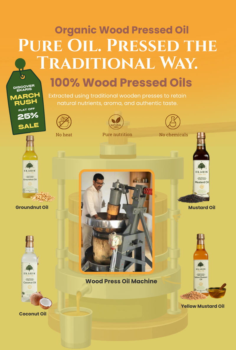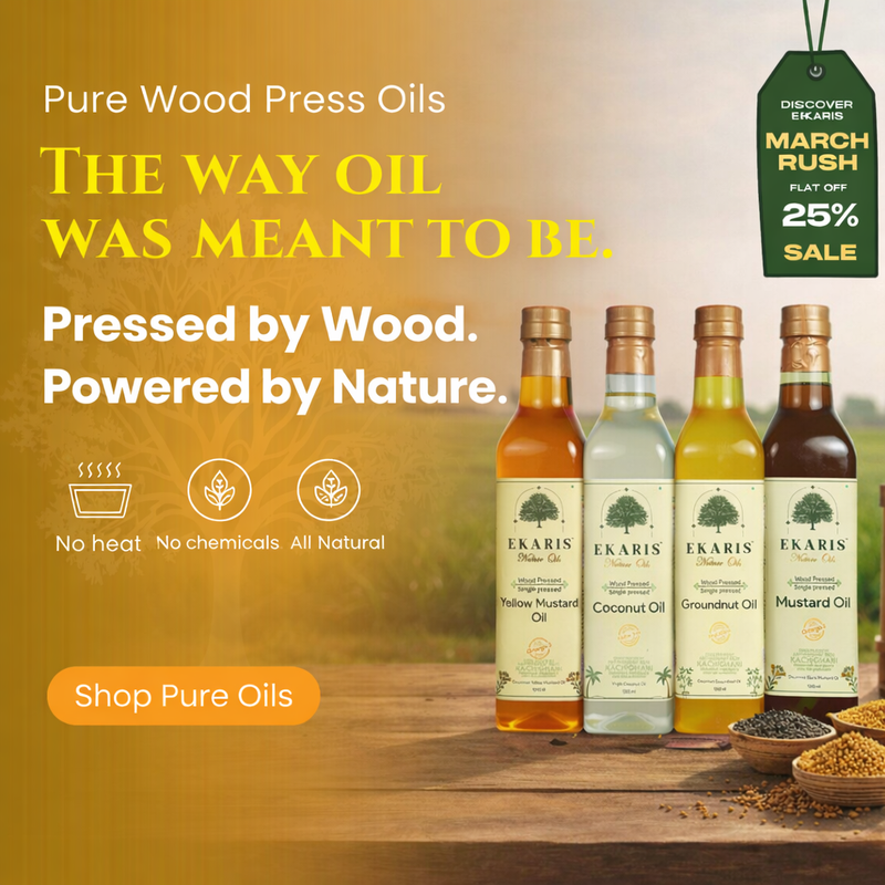 Ekaris products are made using traditional wood-pressed and bilona methods, in small batches, from high-quality native ingredients. Our ghee is made from pure A2 milk and our oils are cold-pressed from premium seeds without any chemicals or heat. This labor-intensive, slow process ensures superior nutrition, taste, and purity—justifying the premium price.