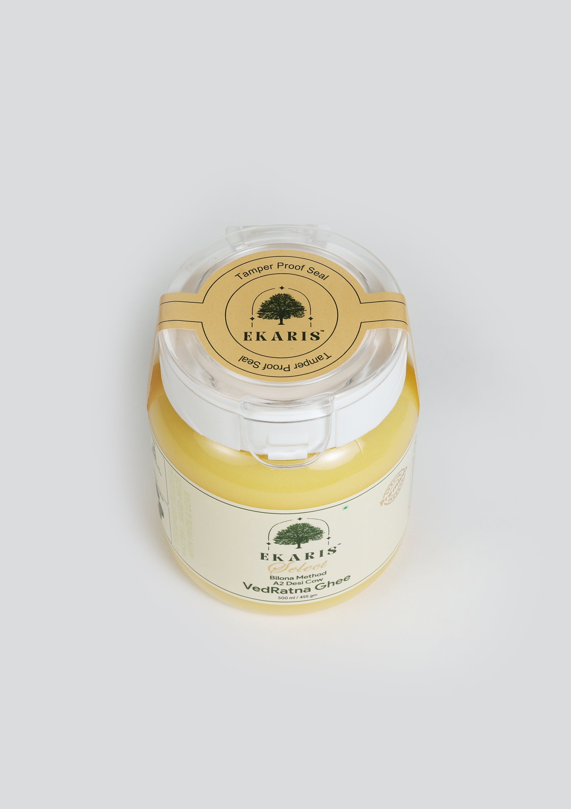 VedRatna Ghee is different from other Ghee ! It is made from Desi Cow Breed of GIR, RATHI & HALLIKAR. The Ghee is made the Vedic Way, no machine is used in the complete process.