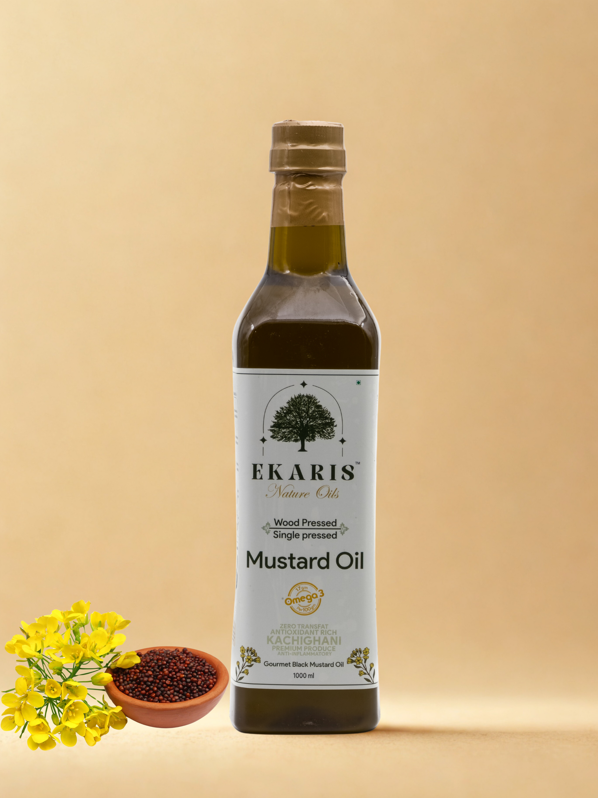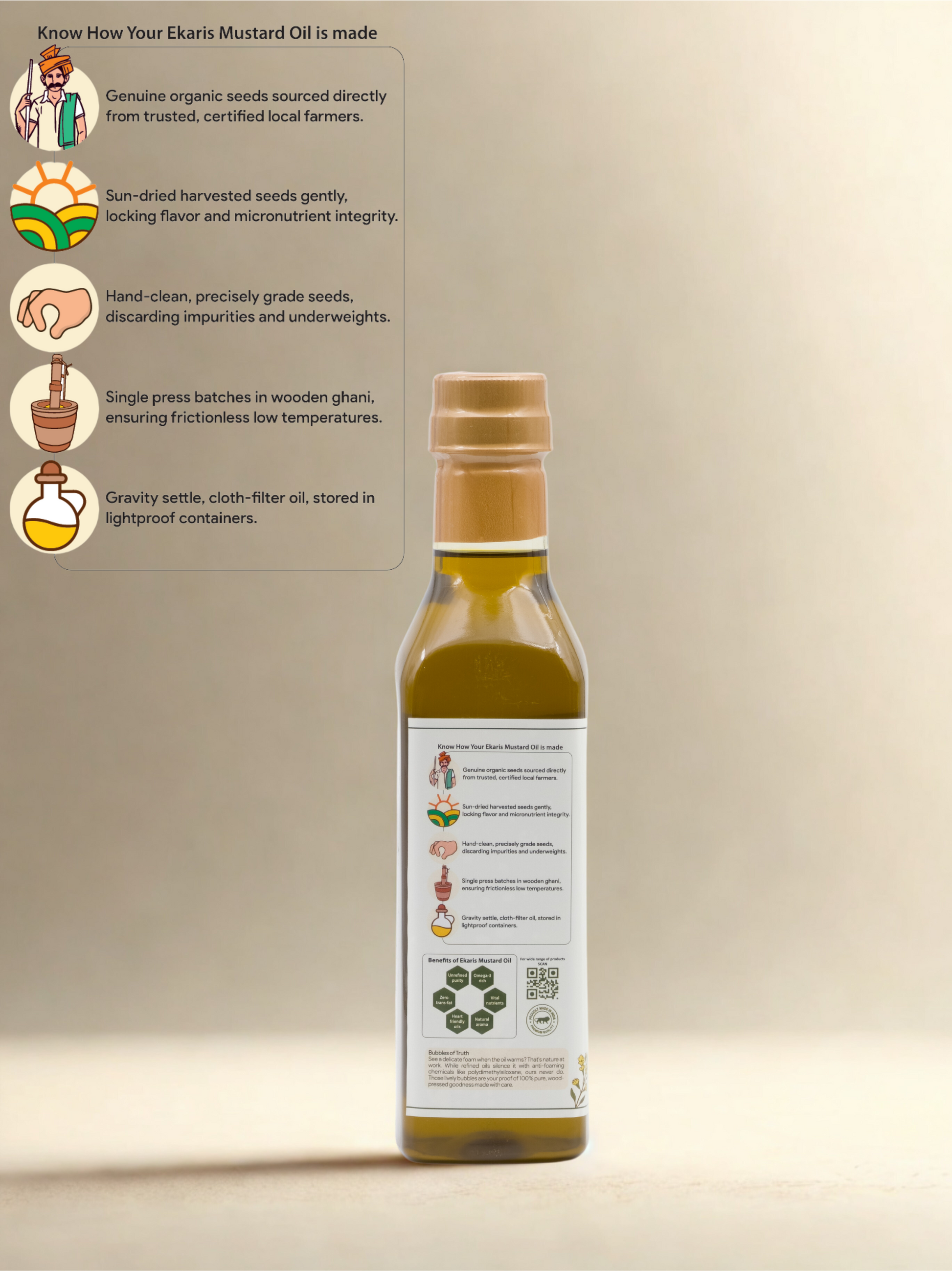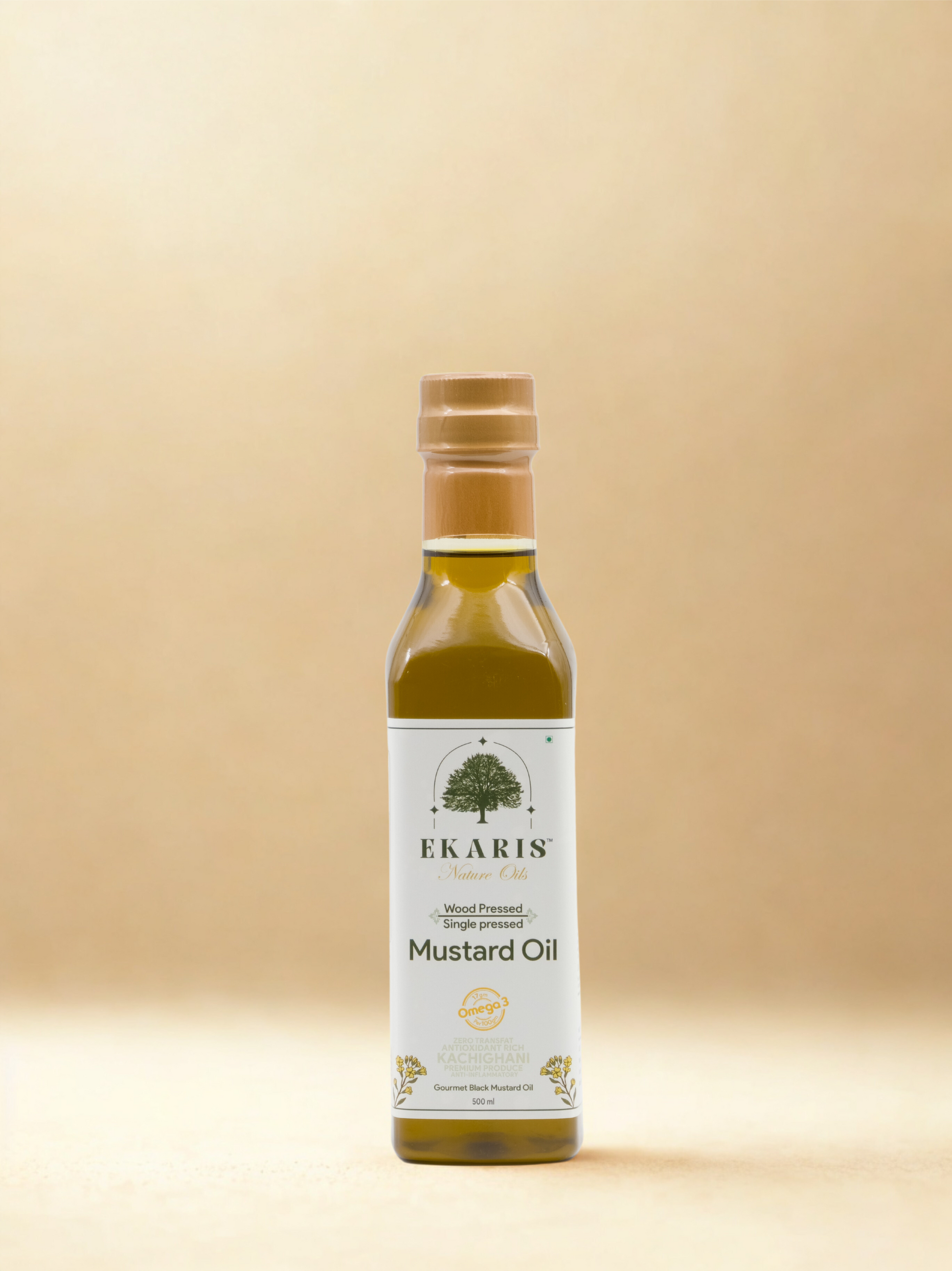 šæ Wood-Pressed Mustard Oil (500ml) ā Extracted from premium mustard seeds using the traditional Kachchi Ghani method, offering authentic aroma and high-heat stability for Indian cooking.