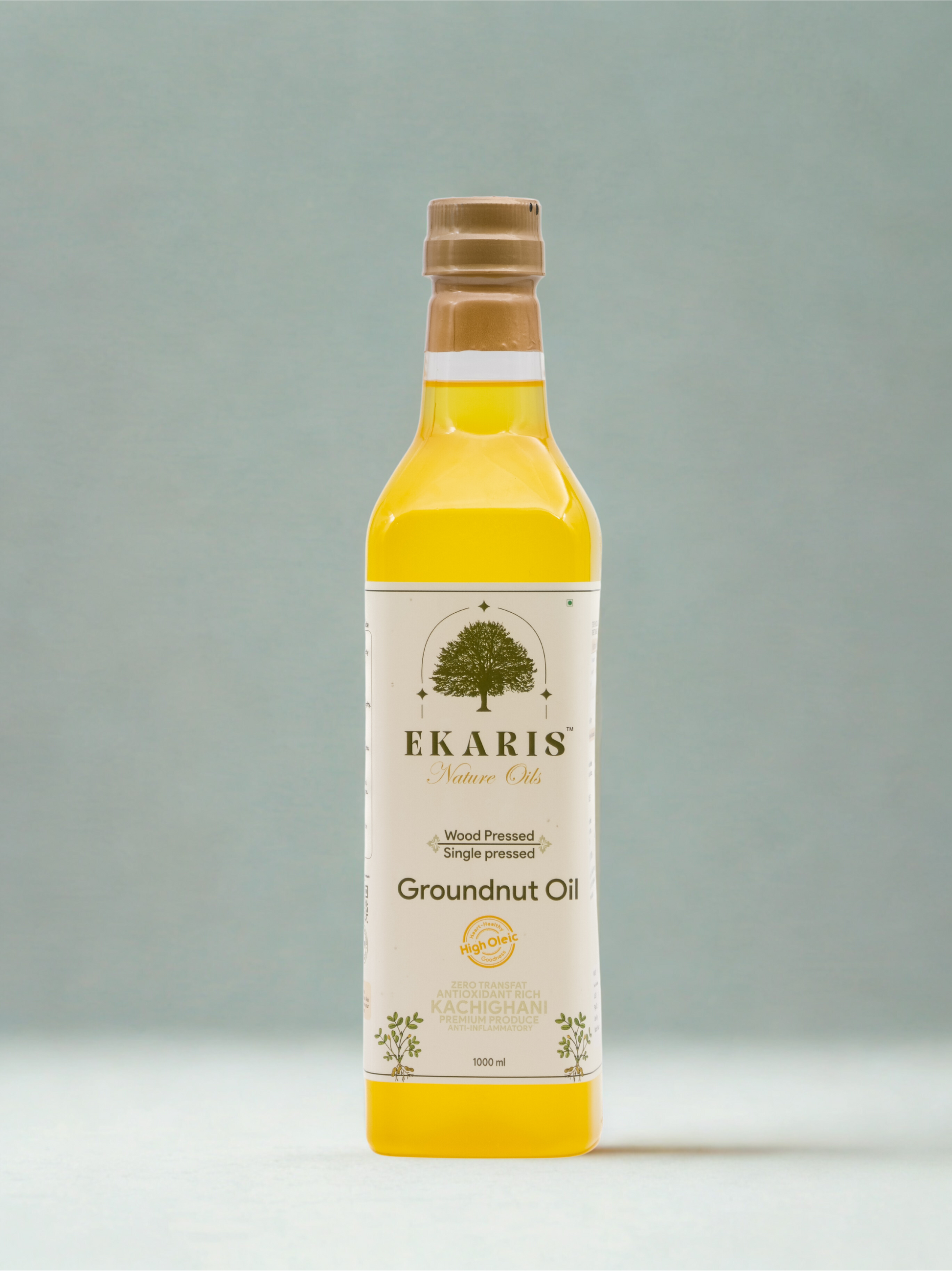 🌿 Wood-Pressed Groundnut Oil (1L) – Extracted through traditional Kachchi Ghani techniques, our groundnut oil is nutrient-rich, aromatic, and perfect for high-heat cooking or ceremonial use.